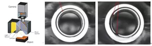 圖1: 好的工件:高速相機(jī)拍攝出完整環(huán)形區(qū)域;缺失的工件:確實(shí)的部分呈現(xiàn)暗區(qū)域