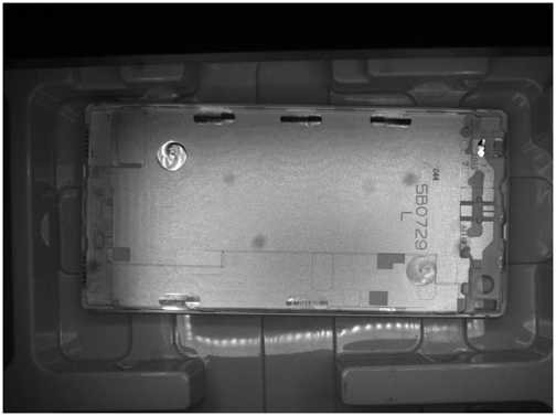手機(jī)外殼定位項(xiàng)目中,手機(jī)外殼產(chǎn)品通過(guò)料盤固定,做產(chǎn)品位置檢測(cè)時(shí)使用長(zhǎng)方形光源從產(chǎn)品上方打光,保證產(chǎn)品各個(gè)位置打光均勻。LED燈珠缺陷檢測(cè)項(xiàng)目中,為了消除透明導(dǎo)光柱位置檢測(cè)時(shí)的背景干擾,故使用圓形環(huán)光在產(chǎn)品底端打光,把產(chǎn)品整體照亮。